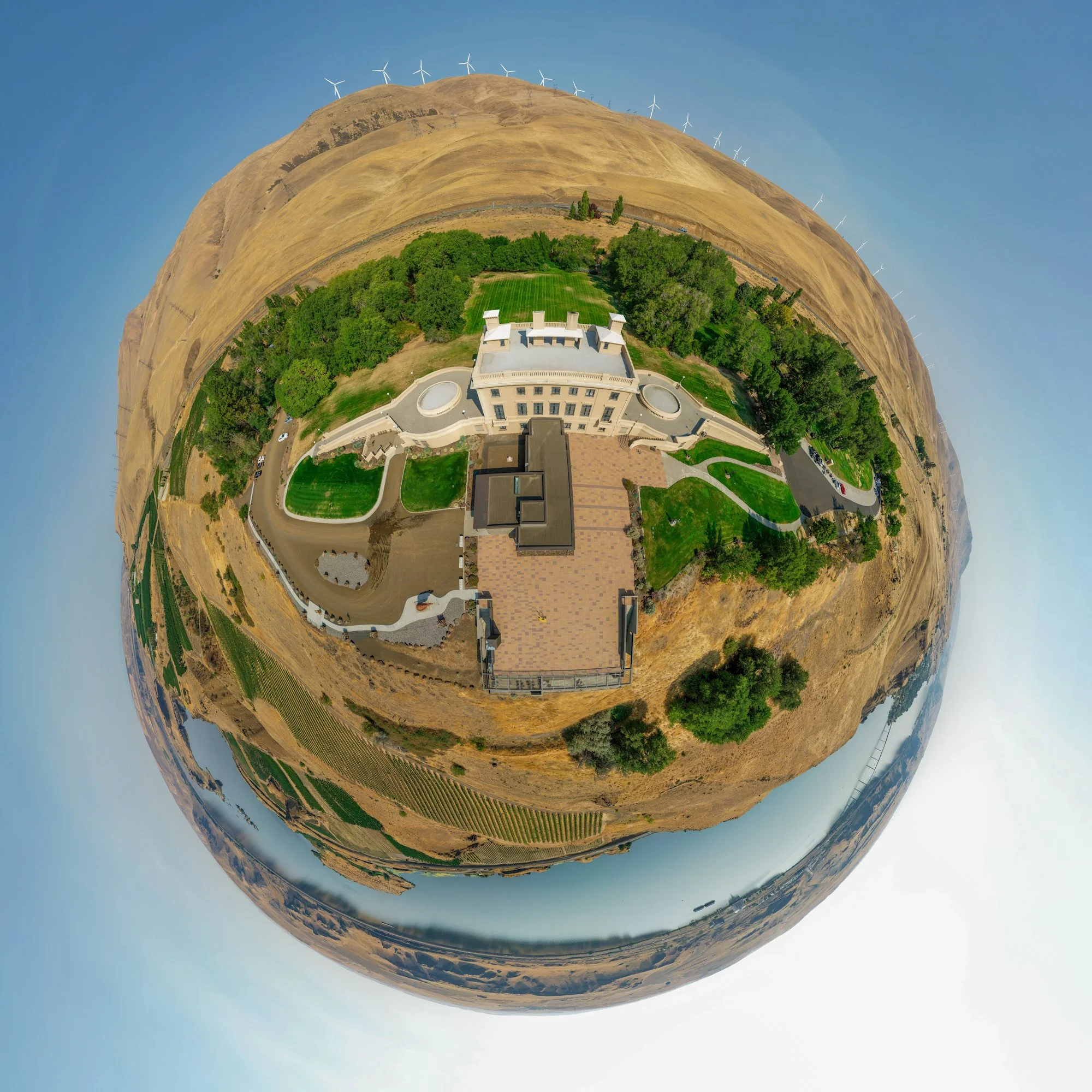 Mountains, lakes, ocean beaches, and cityscapes, photographed as wide panoramas, small planets, and standard formats