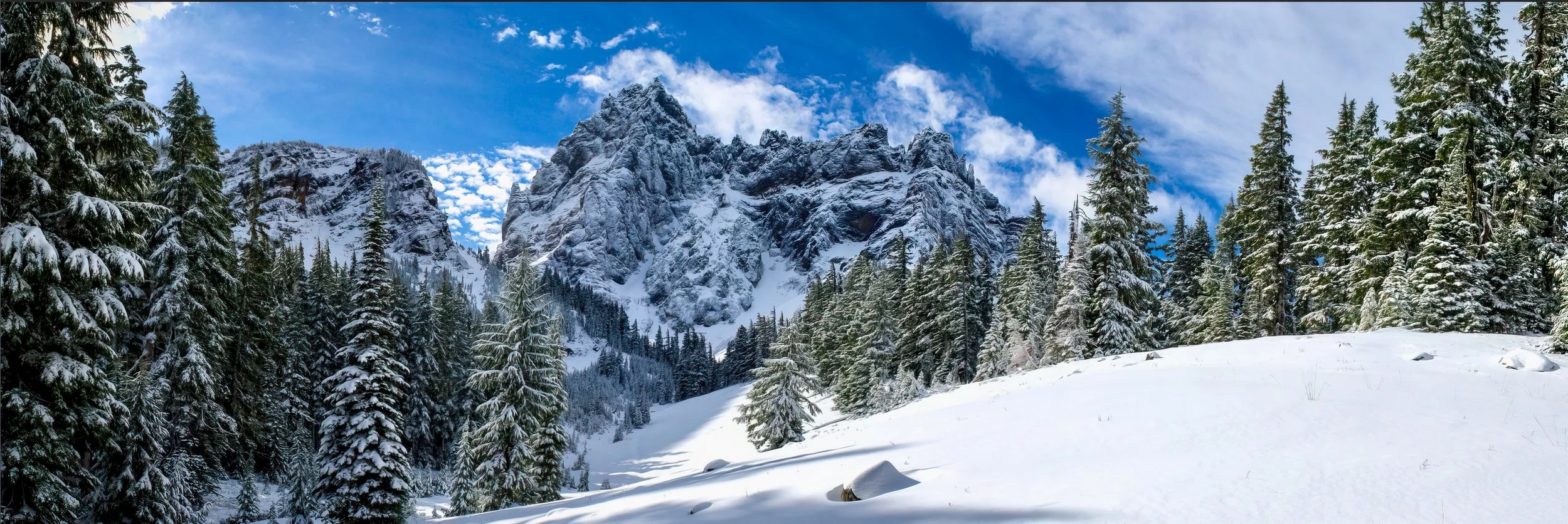 This wide panorama format has become one of my favorites. They have a 3:1 ratio in as much as the width is three times the height. I feel this really draws the viewer into the landscape to make them feel as much on location as possible. You will see many of these style panoramas as well as more traditionally formatted photo layouts. All are available for sale in a variety of print sizes and materials